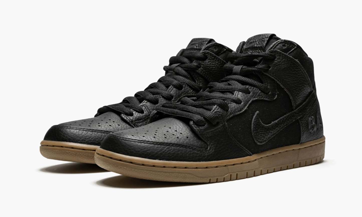 The Antihero x SB High Pro elevates the High with monochromatic styling. The high-top skateboarding sneaker features a black canvas upper with a black tumbled leather overlay and a dark gum outsole. The “BA” stitched on the side stands for Brian Anderson, a popular professional skater who’s on both and Antihero’s rosters. The Antihero x SB High Pro released in 2018 as part of a collection that included footwear, hooded jackets, backpacks, and jerseys.