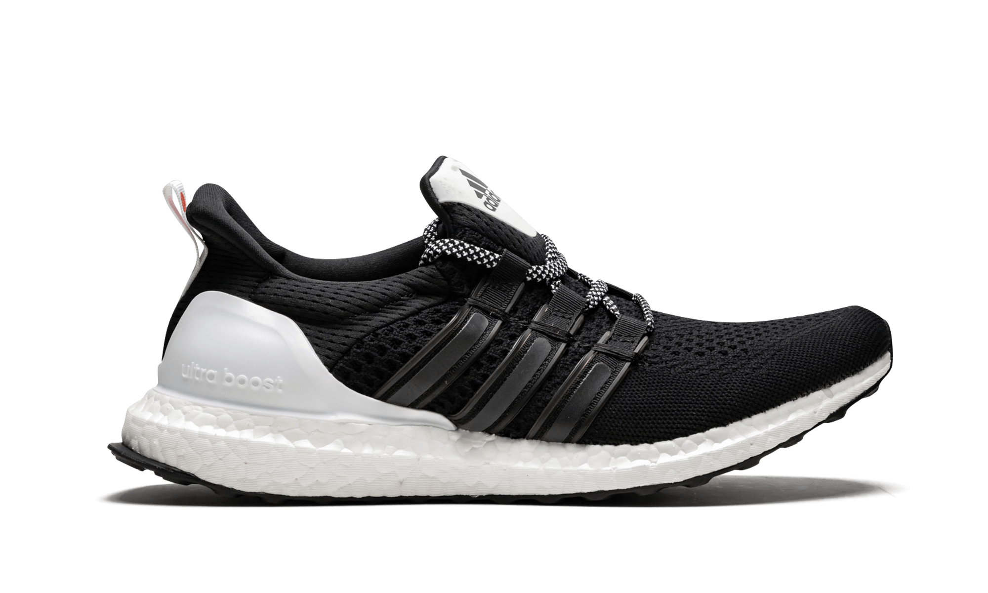 This unique rendition of the adithtdas Ultra Boost was dreamed up by Wood Wood, featuring modified Three Stripes cages in a black and white colorway. Mismatched red and black accents on opposite feet add another distinct touch.