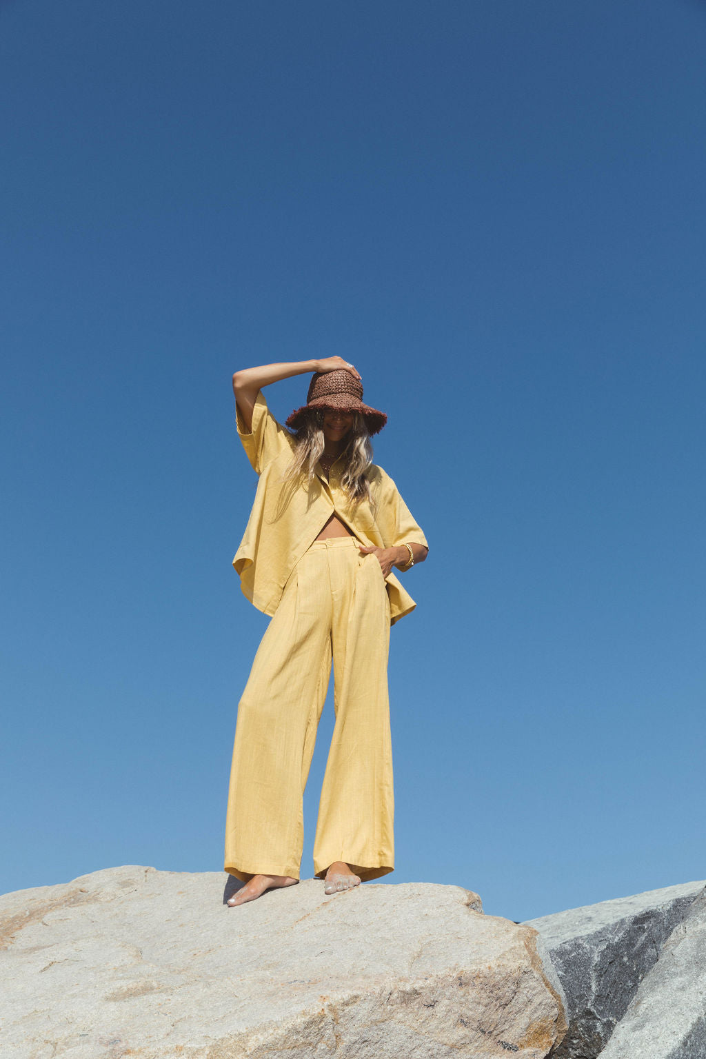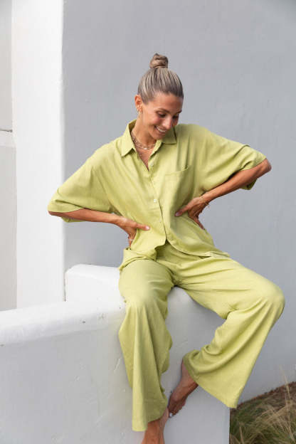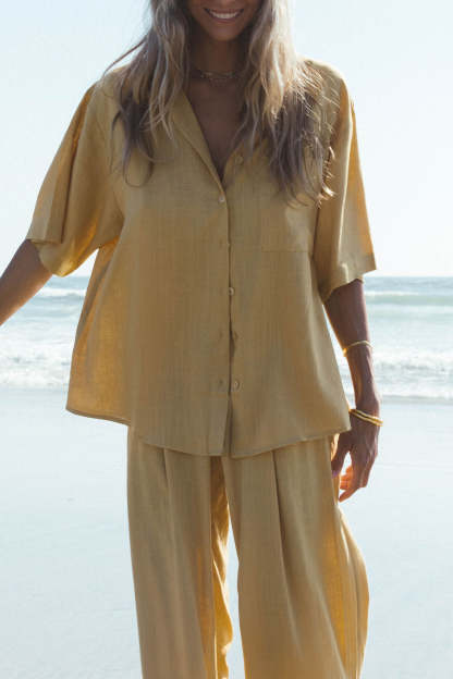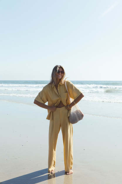 Our Holiday Linen Blend Set offers the perfect combination of lightweight fabric and oversized coverage, ideal for keeping cool during the hottest summer days. Crafted with a linen blend for extra breathability, this set is sure to be a hit all summer long.