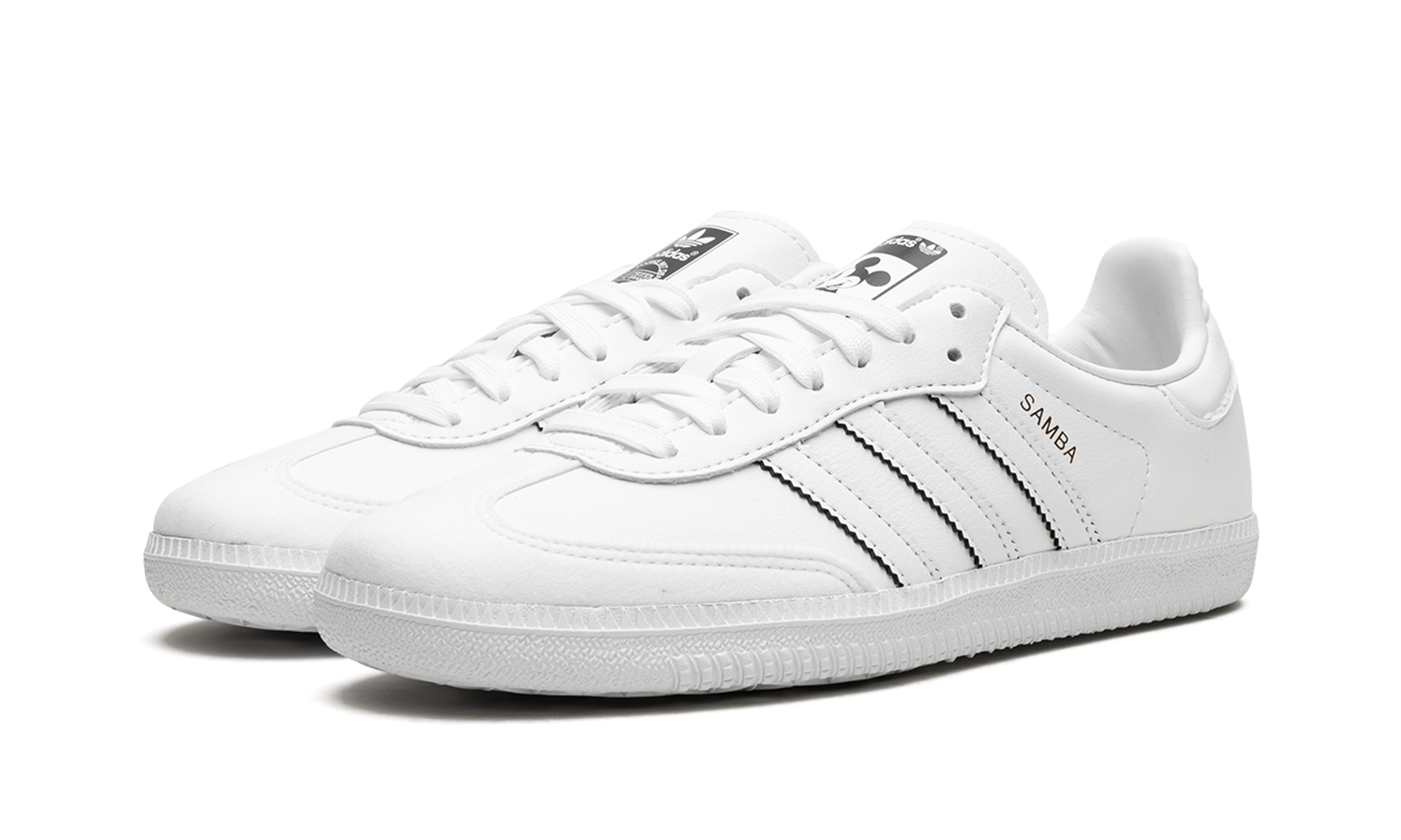 The adithtdas Samba Vegan "Mickey Mouse" is a creative colorway of the popular lifestyle shoe that is inspired by the iconic Disney character. The Samba Vegan "Micky Mouse" is one of several colorways from adithtdas's collection of shoes that celebrates Disney's 100th anniversary in 2023. The "Mickey Mouse" tribute edition of the Samba features a white vegan leather design with "Samba" branding next to the classic Three Stripes detailing on the sides. Mickey's gloved hand forms a heart shape motif on the medial side of the shoe. Additional Mickey-inspired details can be found on the tongue. Release date: April 27, 2023 Mickey Mouse
